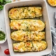 One portion of lasagna with roasted chicken, artichoke hearts, spinach and creamy leek and parmesan sauce with side of roasted broccoli.